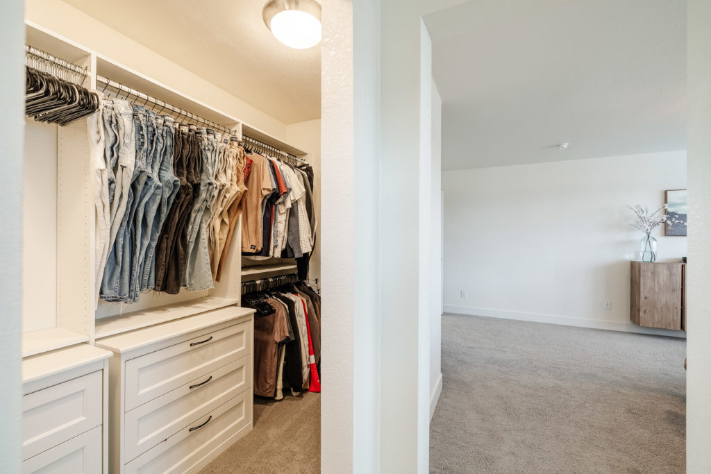 When you walk upstairs, you’ll find the private primary suite with a full bathroom. The primary walk in closet also features custom built ins – including 2 dressers! Both secondary bedrooms are spacious with private vanity and shared shower and water closet.